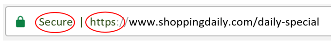 Os cibercriminosos de hoje são tão sofisticados que podem facilmente se disfarçar como se fossem sites populares, sem que o usuário perceba que estão em um site falso. Para verificar se você está em um site seguro, veja sempre a barra de endereços do seu navegador. Os servidores seguros sempre usam a criptografia Secure Socket Layer (SSL) para proteger as transações, de modo que o URL sempre começa com HTTPS (não apenas HTTP). Se a letra S estiver faltando no início do endereço da página, provavelmente não é um portal seguro e você não deveria utilizá-lo. Você também pode identificar se a página é segura pelo ícone do cadeado no painel à esquerda do endereço do site (veja a figura).