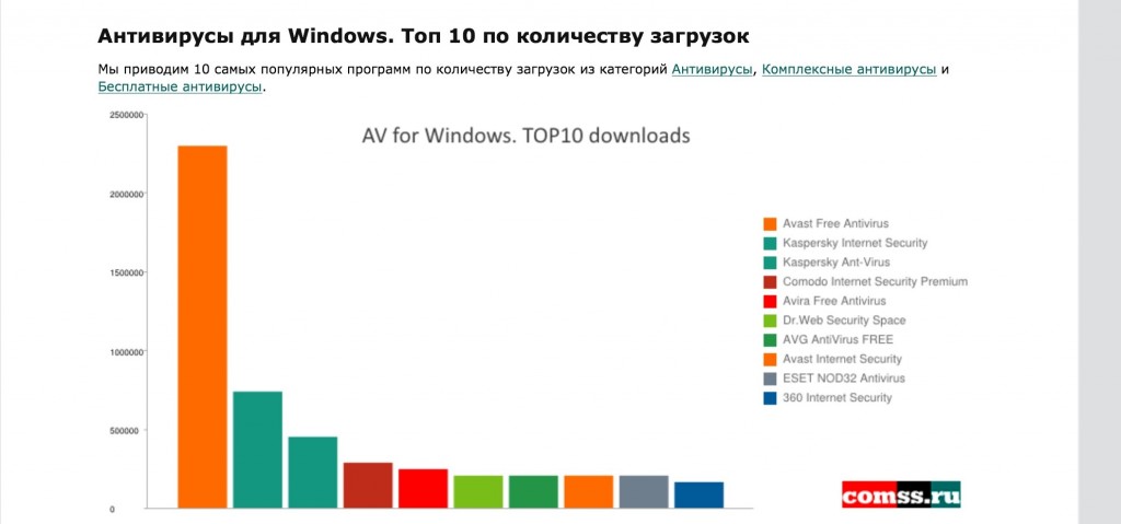 Загрузки Avast на Comss.ru достигли отметки 2 292 991 , а Avast Free Antivirus для Windows -222 054 загрузок. Больше чем у любого другого антивирусного вендора!
